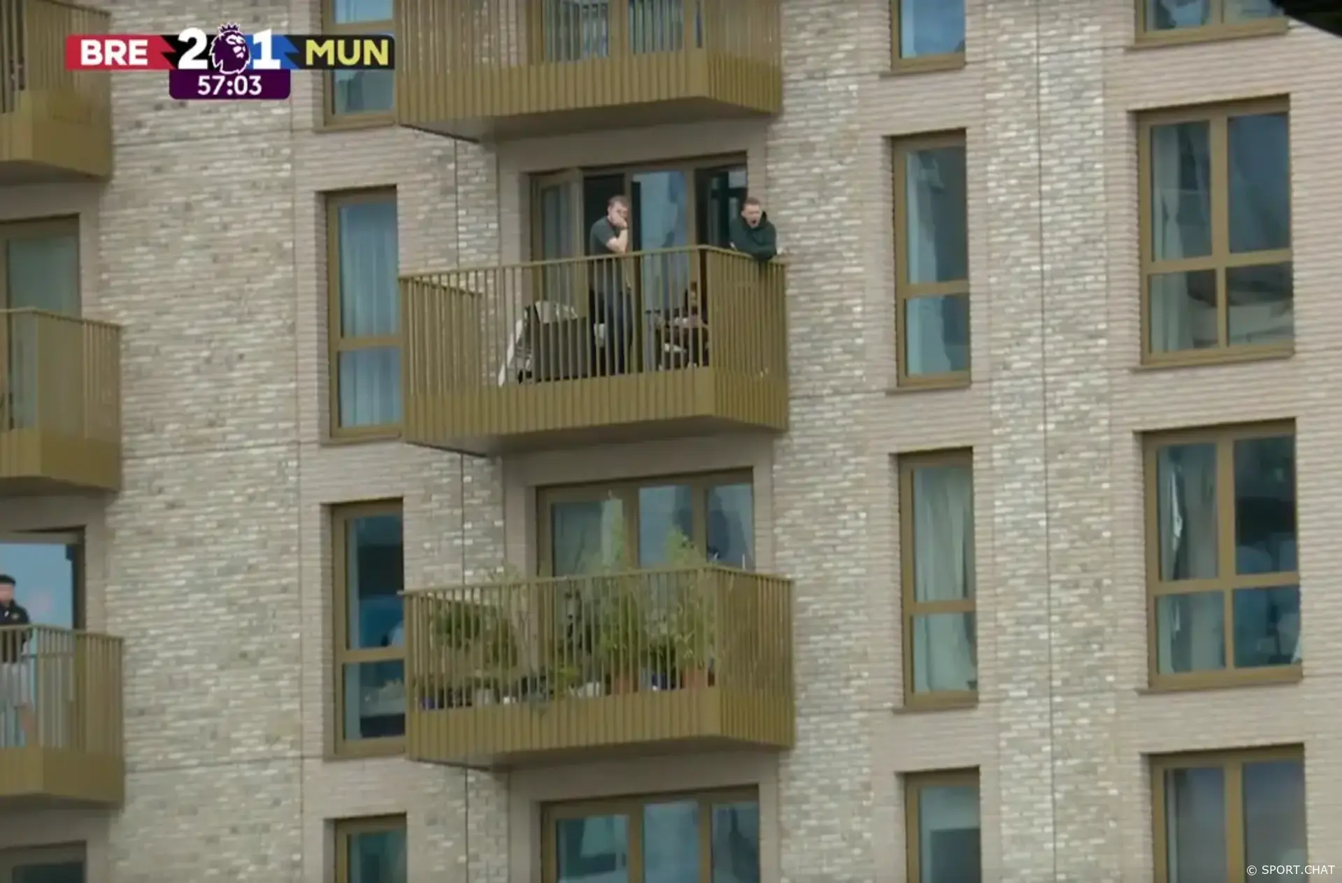 Во время поединка против «Брентфорда» часть болельщиков «Манчестер Юнайтед» нашла необычный способ посмотреть игру. Не имея возможности попасть на стадион, они расположились на балконах жилого комплекса неподалёку.