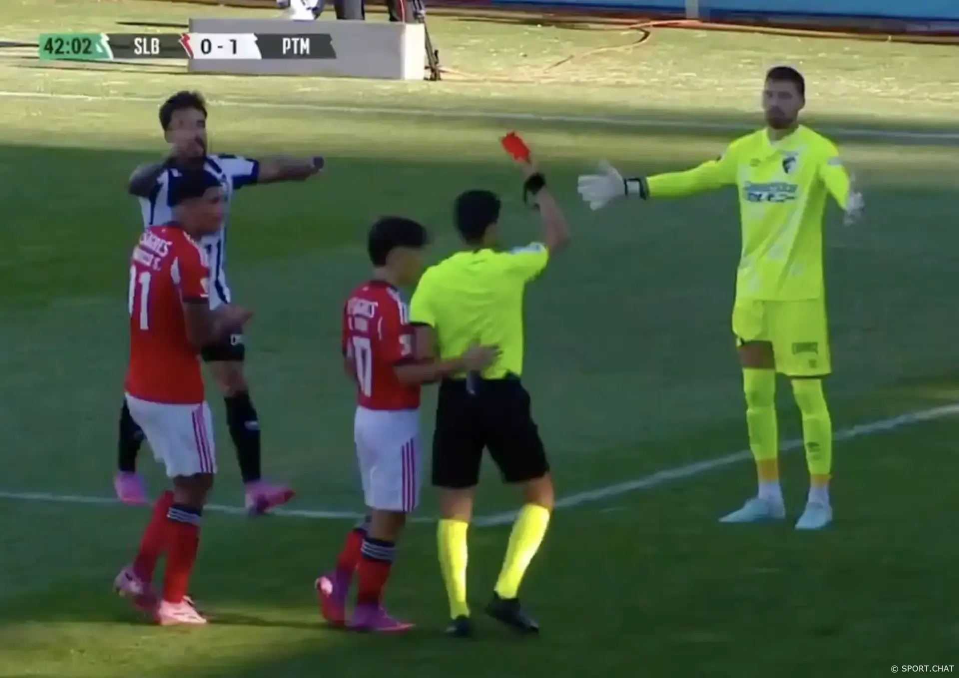 Необычный эпизод произошёл в матче второго дивизиона чемпионата Португалии: команда «Портимоненсе» осталась без обоих голкиперов. Сначала один вратарь был удалён с поля, а спустя всего четыре минуты красную карточку получил и его сменщик.